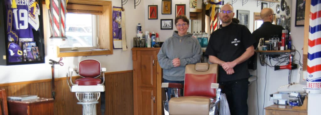 Today, the interior of Barber Jon’s is charming. From the antique barbershop light to the Vikings football jersey, the friendly, comfortable environment offers standard barbering services delivered with community pride.