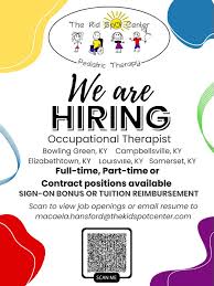 The Kid SpOt Center, a pediatric outpatient clinic offering occupational therapy, speech therapy, physical therapy, behavior supports, & mental health counseling, along with several other services, is hiring for occupational therapists, physical therapists, speech language pathologists and school-based therapists at its Somerset, Campbellsville and Elizabethtown offices.